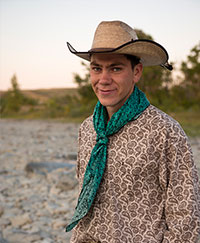 This year, Brown Creek Wild Rags is sponsoring Joel Lybbert. The young horse trainer and trick roper has been working with horses most of his life - and has now trained a Texas longhorn steer named Jasper.